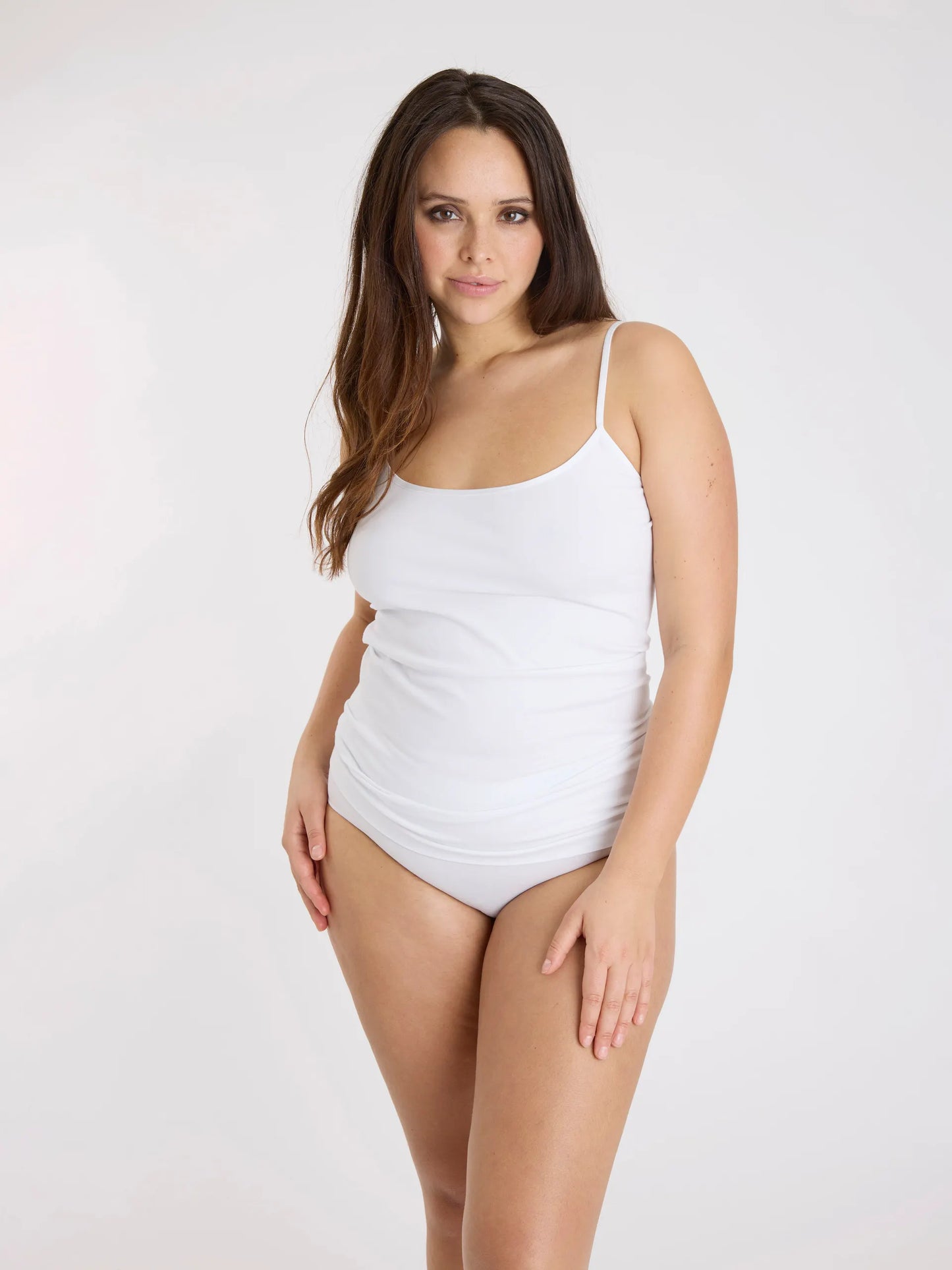 Medvilninė viršutinė dalis su plonomis petnešėlėmis yra puikus produktas dėvėti po įvairiais drabužiais ir taip pat miegui.