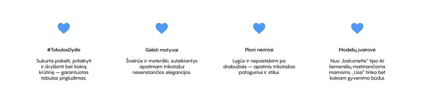 Šį sezoną grįžtame prie savo šaknų, atnaujindami pirmąjį CHANGE Lingerie sukurtą liemenėlę. Jau daugiau nei 30 metų milijonai moterų visame pasaulyje myli mūsų populiariausią apatinių drabužių kolekciją: Lissi. Švęsdami jos ikoninį palikimą, didžiuodamiesi pristatome Lissi Bloom – šviežią ir šiuolaikišką nesenstančios klasikos interpretaciją. Ši kolekcija užtikrina tobulą prigludimą ir puikų funkcionalumą, kurį jaučiate ir mylite, ir yra sukurta taip, kad jaustumėtės tiek pasitikinčios savimi, tiek gražios.