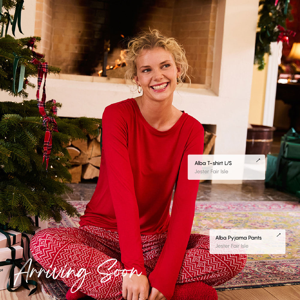 Ugnis spragsi, kakava šilta, o jaukumas – svarbiausia. Šį sezoną apsigaubkite švelnumu, kuris jaučiasi tarsi dovana, su mūsų „Viskas paruošta Kalėdoms“ pižamų kolekcija. Nuo jaukių Fair Isle stiliaus džersio komplektų iki nesenstančių flanelinių langelių ir šilkinio satino apdailos – kiekvienas daiktas sukurtas tyliai namų laimei. Nesvarbu, ar tai derantys komplektai po eglute, ar chalatas, kurį dėvėsite visą žiemą – kiekviena detalė suteikia komforto, šilumos ir šiek tiek šventinės magijos kiekvienai akimirkai.